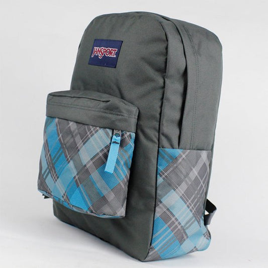 Jansport Superbreak Backpack Mammoth Blue Sideways Plaid